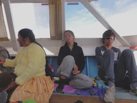 La traversée Nord-Sud du Pays a commencé sur les rives du lac Titicaca. Après le passage de la frontière, nous avons retrouvé Rémi et Jen, puis, en compagnie de la famille Charles, nous sommes partis tous ensemble sur l’île du Soleil. Dans la mythologie bolivienne et Péruvienne, c’est sur cette île que serait apparu le soleil, une sorte de centre du monde des dieux en quelque sorte. Dernière petite pause détente avant de remonter sur nos montures. Le soleil était au rendez-vous, évidemment, les amis aussi. Bref, que demander de mieux ?