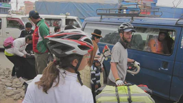 Le 28 septembre, nous reprenions la route, enfin, après près de trois semaines de vacances. Les premiers kilomètres nous ont mené en deux jours à La Paz, du bon asphalte, des grandes lignes droites, quelques petites montées pour réveiller les mollets, rien de tel pour s’échauffer ! Dès le premier soir, nous retrouvons nos vieilles habitudes et toquons chez quelqu’un pour demander l’hospitalité. Ce soir-là, ce quelqu’un est un prêtre, adorable, qui nous offre 4 murs et un toit pour la nuit, des matelas en paille, le dîner et le petit déjeuner. Royal ! Nous quittons définitivement les bords du lac Titicaca, et grimpons vers La Paz, plus haute ville du monde de cette taille. L’entrée est la plus éprouvante que nous n’ayons jamais faite dans une grande ville (vous voyez, ça commence les extrêmes). Nous traversons El Alto, qui est une ville moche, grise, sale, polluée, grouillante de colectivos[^1] Les rues débordent de véhicules motorisés, circulants sans aucune règle apparente, le flot des piétons est effrayant. Nous nous sentons comme des fétus de paille ballottés dans cette circulation, presque écrasés à chaque nouveau soubresaut. On dirait que la ville vomit ses habitants. Charmante arrivée.
