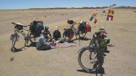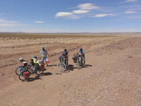 Nous sommes super contents, c’est un peu un soulagement. On aime bien se faire mal mais il y a des limites… ! Les jours qui suivent, nous sentons vraiment que nous poussons les portes du désert pour nous y enfoncer. Le peu de végétation disparaît petit à petit, laissant place à un paysage de sable et de caillasse. L’eau commence à manquer, il faut penser à organiser les réapprovisionnements. Les plaines arides, sèches et balayées par le vent s’enchaînent. Comment des gens peuvent-ils vivre et cultiver ici ??? Après trois jours à ce rythme, nous entrons dans Salinas de Garci Mendoza, bien contents d’être déjà arrivés là.