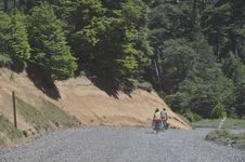 Dernier jour avant l’arrivée à Melipeuco, c’est dur, la fatigue commence à se faire sentir après ce dénivelé et cette piste qui, décidément, empire depuis la frontière chilienne. Nous commençons par 7 kilomètres de montée raide, trop raide et trop “glissante” avec ce ripio en mélange de galets ronds, de poussière et de tôle ondulée. Il nous faudra deux bonnes heures pour en arriver à bout. Un rapide calcul vous montrera que nous avancions donc en moyenne plus lentement que des piétons. On organise un relai pousse-pousse pour monter les vélos en s’entraidant, ça demande de la patience mais les enfants sont motivés et ça le fait bien. De toute façon, cela nous arrivera sûrement souvent dans les semaines à venir ! Puis nous entamons enfin la dernière loooongue et fastidieuse descente sur une piste en aussi mauvais état que précédemment, finalement plus fastidieuse que la montée ! Après quelques kilomètres, nous comprenons qu’il s’agit probablement d’une « piste témoin », vitrine du savoir-faire unique des Chiliens en la matière (inspiré par les savoir-faire bolivien et périvien mais sublimé) : tôle ondulée sans discontinuer sur des kilomètres, bac à sable pour que les roues s’y enfoncent, graviers de toutes tailles (petits pour cacher les bacs à sable, moyen pour glisser, gros pour provoquer les dérapages et éventuellement provoquer de belles écorchures) et enfin et surtout, l’élément le plus important, une pente très importante pour accentuer le danger. Nous roulons donc les mains serrées/crispées sur les freins, à la folle vitesse de… cinq à neuf kilomètres à l’heure. C’est long. La pauvre Alicia, avec son chargement uniquement à l’arrière, chute plusieurs fois et commence à fatiguer. On avance le plus doucement possible mais ça tire un peu. Puis, enfin, on retrouve l’asphalte, et on se laisse glisser entre les champs et les bois, dans les odeurs de fleurs et de résineux. Peu avant notre objectif, la route nous fait traverser une coulée de lave de 1751, issue du volcan qui se dessine, enneigé, en toile de fond. Nous arrivons finalement à Melipeuco, cinq jours après avoir entamé cette magnifique traversée de la Cordillère. On s’est régalé ! Le temps n’étant pas au beau fixe et les troupes ayant besoin de repos, nous nous sommes trouvés une petite cabane avec… un poële !! Nous nous reposons donc deux jours, espérant laisser passer le mauvais temps… avant de repartir pour la suite de nos aventures entre les volcans !
