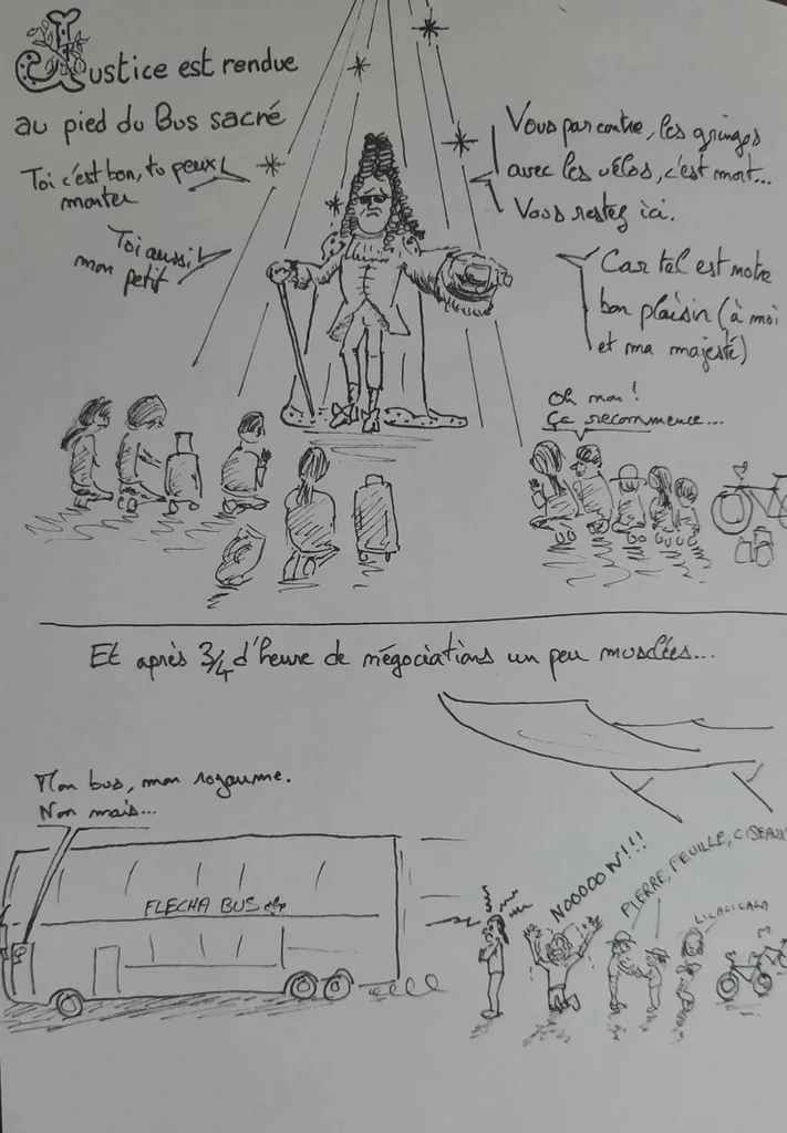 En arrivant à Salta, la première chose que nous faisons donc est de nous rendre au terminal de bus afin d’anticiper autant que faire se peut les problèmes liés au transport de vélos dans les bus argentins. Après quelques demandes infructueuses auprès de diverses compagnies (qui nous refusent toutes les vélos et nous demandent de les envoyer à part en colis), la chance semble nous sourire avec FlechaBus. Camila, au guichet, prend le temps d’écouter la description exacte de tout notre barda et nous assure que, si si, il sera tout à fait possible de voyager avec nos vélos. Nous sommes un peu surpris (au regard de notre propre expérience et de celle d’autres cyclos), mais demandons de façon très claire, montrons des photos, et insistons lourdement pour être sûrs que Camila ait bien compris le volume avec lequel nous voyageons. Pour optimiser nos chances de réussir à monter dans le bus, nous achetons les billets et l’excédent bagage pour le 1ᵉʳ décembre, dans six jours. C’est un lundi, normalement le jour où les bus sont les moins pleins : mettons toutes les chances de notre côté !