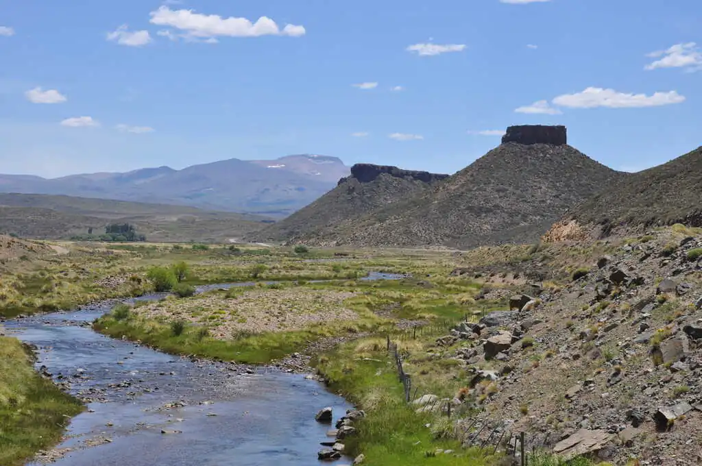 Finalement, le samedi après-midi, après seulement trois jours d’attente, les vélos arrivent tous ET sans casse !! C’est la fête ! Nous bouclons les sacoches, et nous reprenons donc enfin la route le dimanche 7 décembre, cap plein ouest vers les montagnes de la Cordillère. Nous évoluons dans un paysage de pampa, c’est grand, c’est beau, avec en ligne de mire les sommets enneigés et le vent dans le dos pour le moment ! Nous sommes beaucoup moins haut que deux semaines auparavant, mais il va nous falloir remonter un peu en dessous de 2000 mètres d’altitude avant de nous laisser glisser côté chilien. Pour le plus grand bonheur d’Alicia, nous croisons souvent des chevaux en semi-liberté dans ces vastes plaines. Nous retrouvons le plaisir et la légèreté de croiser de nombreux cours d’eau. C’est beau et cela nous simplifie considérablement la tâche : plus besoin de surveiller la consommation d’eau, plus besoin d’anticiper pour les bivouacs. Le premier soir, nous dormons dans une cabane de berger au bord de la route, avec une vue incroyable et une source juste à côté, pour laquelle de nombreux automobilistes s’arrêtent faire le plein… d’eau. Nous passons la soirée à contempler le coucher de soleil sur les montagnes, savourant le fait d’être là et nulle part ailleurs.