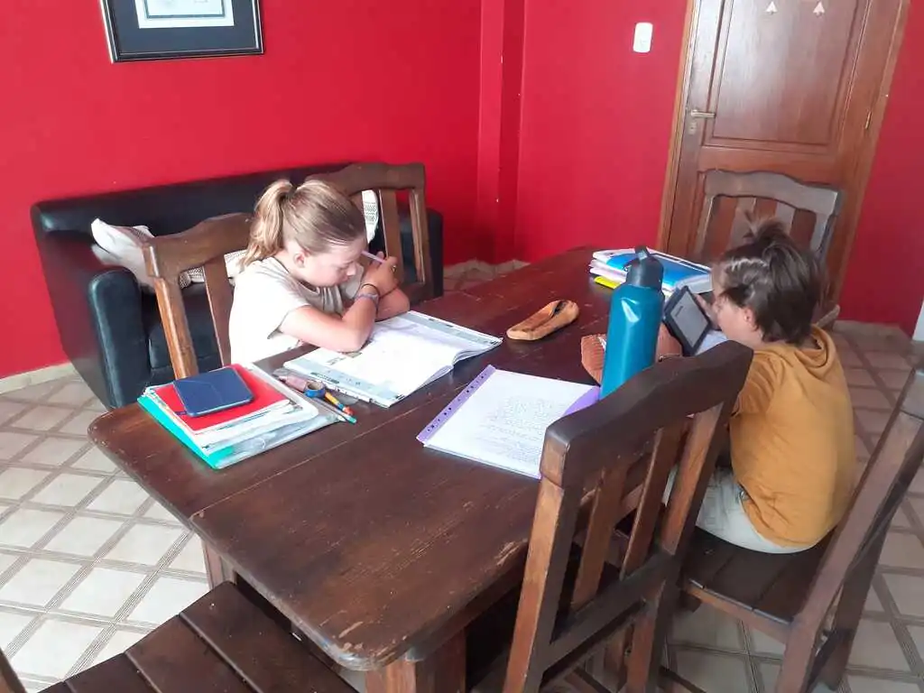C’est donc l’esprit léger que nous profitons de la belle Salta. Nous louons une chambre en colocation dans un petit appartement, c’est parfait pour cette longue pause. Nous sommes seuls presque toute la semaine dans ce petit cocon, très simple (toujours 1 lit double et 2 lits simples…), mais il y a une salle de bain avec baignoire, une cuisine (avec un four, on se régale de gratins de courgettes et de crumble aux pommes !), une pièce de vie et un balcon. Les enfants trouvent que « c’est luxe ! ». Notre séjour se résume par de longues sessions école qui permettent aux enfants de se mettre à jour dans leur avancée par rapport au programme, des balades à pied dans les rues de la ville, des dégustations de glaces chez Dulce Encanto à quelques pâtés de maisons. Nous visitons le beau musée d’Archéologie de Haute Montagne qui nous intéresse tous beaucoup. Il présente des objets trouvés sur le site archéologique le plus haut du monde, à 6700 d’altitude, dans la région de Salta, et l’une des trois momies d’enfants qui ont été trouvées là-haut dans un état de conservation extraordinaire. Nous retrouvons également Daiana et Marcelo, avec la famille desquels nous avions été invités à partager un barbecue la veille d’arriver à Salta, pour dîner ensemble en ville. Ils nous calent d’entrée de jeu sur le rythme argentin : après avoir dîné, ils nous proposent d’aller grimper à pied sur l’un des monts au bord de la ville pour y admirer la vue. Il est 23h00, « c’est la nuit, il fera moins chaud ». Oui mais nous on va plutôt se coucher à cette heure-là d’habitude, on ne part pas en rando… Allez, c’est parti ! Merci à eux, on a passé une très chouette soirée (couchés à 2h du matin, nos enfants ont pu faire la grasse matinée le lendemain, eux travaillaient et leurs enfants avaient école) !