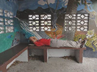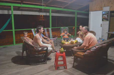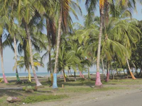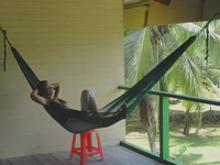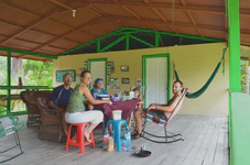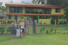 Nous sommes ensuite descendus des montagnes pour nous diriger vers la côte Caraïbes. Attention, voyageurs qui lisez ces lignes et qui comptent peut-être y aller : cet endroit est un piège !!! Nous nous sommes innocemment dirigés vers le village de Cahuita. Et là, PAF ! C’est là que le piège s’est refermé ! À la recherche d’un endroit pour la nuit, nous nous sommes arrêtés devant la belle maison de vacances de Luis. Il faut vous planter le décor pour bien comprendre ce qui va se passer : imaginez une belle maison ouverte sur l’extérieure. Elle est joyeuse et colorée. Au rez-de-chaussée, une cuisine en pleine air, un grand espace couvert, et une grande chambre dont la cloison n’est constituée que d’une moustiquaire. À l’étage, encore des chambres, et un gigantesque espace de vie sur une belle terrasse. Tout cela fait face à la mer, de laquelle la maison n’est séparée que par une fine route et une rangée de cocotiers. Elle est également entourée d’une belle pelouse verte et dense. Par derrière, dans un jardin bien entretenu, se dressent de nombreux arbres fruitiers. Nous avons pilé devant cette maison pour tout cela, et aussi parce que leurs occupants nous ont fait de grands signes amicaux.