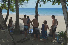 Bref. Les Mistrals nous ont rejoint le lendemain de notre arrivée, puis quelques jours après une autre famille française adorable en camping-car (leur site riri.fifi.loulou.over-blog.com), et une intense semaine et demi de glandouille a commencé comme nous n’en avions jamais connu depuis le début du voyage, et même depuis un sacré bout de temps. Au programme : glandouille totale, observation des vagues depuis la terrasse, lecture en hamac, préparation de repas et d’apéros (il faut bien se nourrir), balades sur la plage, session de body-board dans les vagues, quelques excursions au village à la cool de Cahuita pour y trouver deux ressources indispensables (internet et des pina coladas), dîners sur la terrasse, nuits bercées par le bruit des vagues, etc. Vraiment, la belle vie ! C’était beau ! C’était bon ! C’était magique ! Mille merci Luis !