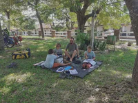 En cette semaine sainte, les Paraguayens ont des jours fériés, tout le monde en profite pour aller à la campagne passer du temps avec ses proches. En repartant de chez Sévé et Javo, le trafic est dense mais ça roule bien. En revanche, on sent que ça tire fort du côté des enfants. Ces nombreux jours consécutifs de chaleur intense et de partage dans diverses familles les ont fatigués, l’otite n’arrange rien. Ni la motivation ni l’énergie ne sont au rendez-vous, Nahuel est même vraiment raplapla… Bon, ce midi-là, on se trouve une petite maisonnette à louer pour reprendre des forces. Nahuel sombre dans le sommeil d’où nous le tirons une heure et demie plus tard afin qu’il dorme aussi cette nuit. Les filles aussi se reposent, tout le monde reprend du poil de la bête !