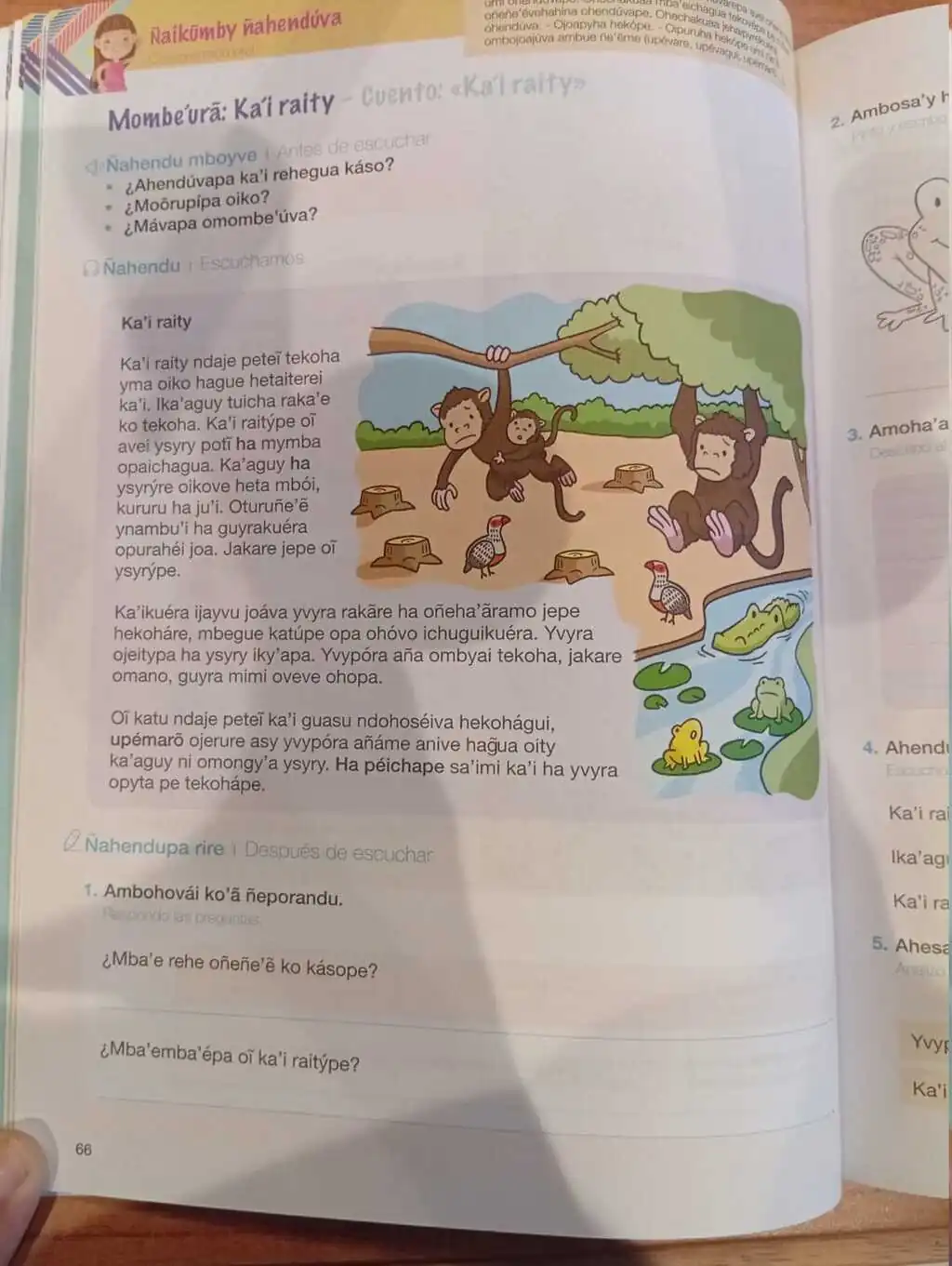 Kuki et sa mère tentent également de nous initier tant bien que mal au guarani. Dans tout le pays, la majorité des gens parlent espagnol bien sûr, mais le guarani est très utilisé dans la vie de tous les jours, et par à peu près tout le monde, particulièrement dans le cercle familial. Et effectivement, dès que nous sortons faire quelques courses, c’est le guarani qui se fait entendre. A l’école, les enfants ont tous des cours en guarani d’ailleurs. Mais pour nous, francophones, qu’est-ce que cette langue est difficile à prononcer !! Elle est pleine de sons qui nous sont totalement inconnus, des nasaux ou d’autres très gutturaux. “Eau”, par exemple, s’écrit “Y”, et se prononce en serrant les dents et en produisant un son au fond de la gorge. Le prononcer correctement mais seul : super balèze ! Et milieu d’un mot composé ou d’une phrase : mission impossible !! Nous concentrons nos efforts sur les basiques (“bonjour”, “merci”, « au revoir », « Les chaussettes de l’archi-duchesse sont-elles sèches ? Oui archi-sèches. ») mais il va falloir bosser un peu plus sur le reste !