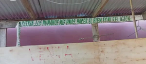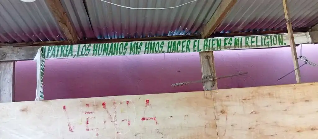 À peine nous sommes nous présentés (et l’abrazo de la part de Wojciech donné), que Nibely nous accueille à bras ouverts : il nous fait entrer chez lui, nous prépare un jus de pomelo coupé à l’eau fraîche, s’assure que nous soyons bien installés, que les enfants n’aient pas trop chauds. Et en moins de 10 minutes, il nous propose de nous emmener à sa petite maison dans les collines de Chololo et de nous la prêter pour quelques jours. Incroyable ! Mais quelle gentillesse ! Nibely a le sourire jusqu’aux oreilles, il a l’air sincèrement content de nous voir là, avec les enfants, sur sa terrasse : « Je suis vraiment heureux que vous vous soyez arrêtés chez moi, quelle joie ! ». Complètement dingue cet accueil ! Une grande banderole peinte déclare sa philosophie au-dessus de son atelier : « Le monde est ma patrie, les êtres humains mes frères, faire le bien ma religion. ». Voilà, que dire de plus ? Nibely est sincèrement heureux de nous rencontrer et de pouvoir nous héberger dans sa maison de vacances situé dans les hauteurs à quelques kilomètres, sans attendre rien d’autre en retour que le plaisir de passer du temps ensemble… C’est génial !