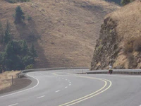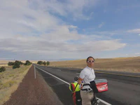 Le lendemain, nous sommes partis du fond du canyon de Maupin pour une nouvelle grosse journée : 80 kilomètres avec une première passe à 1 100 mètres d’altitude. Levés à 6 heure du matin, nous avons commencé par 3 heures et demi de montée (30 kilomètres) sans la moindre interruption. La montée était spécialement difficile : nous évoluions plus à travers un paysage de collines que de montagnes, et pourtant l’altitude ne cessait d’augmenter. Et comme la veille, on ne voyait jamais au-delà de la colline suivante, ce qui nous empêchait d’en voir la fin. On aurait bien aimé trouver les masseurs du tour de France au sommet ! Malgré l’effort, cette journée a été splendide : le paysage complètement désertique sur des dizaines de kilomètres étaient très impressionnants. Cette route étant très peu passante, l’impression de solitude était encore plus grande. Nous avons même eu droit à la compagnie d’un coyote (notre premier et sûrement pas le dernier) qui a trottiné derrière les vélos pendant quelques minutes.