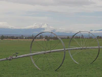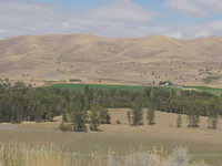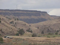 À The Dalles, nous étions à 30 mètres d’altitude et Crater Lake, à plusieurs vallées de là, se trouve à plus de 2 000 mètres. Plusieurs belles montées nous attendaient donc. Nous avons commencé la première grosse journée en partant de Dufur, après une journée de repos. Cette toute petite ville, une des plus vieilles communautés fermières d’Oregon, paraît un peu improbable, coincée dans un petit vallon au milieu de rien. En partant de là, nous avons pédalé plein Sud, vers notre première passe1 en altitude. Le paysage était magnifique, désert, parsemé çà et là de quelques immenses fermes. Jusqu’à la passe (900 m d’altitude), la montée a été longue mais assez douce, la route s’élevait petit à petit au milieu des collines. Arrivés en haut, nous avons été émerveillés par le paysage que nous avons découvert : à perte de vue s’étendaient devant nous de hauts plateaux sillonnés de profonds canyons. Il ne manquait plus que John Wayne sur son cheval, un air d’harmonica en fond, et ça y est, nous étions enfin dans le Wild Wild West !