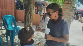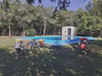 Le jour suivant, la route nous mène sur de magnifiques lacets en pente douce à travers la forêt humide. Le soleil brille, nous roulons à l’ombre de grands arbres, c’est magnifique. Quel changement d’ambiance comparé aux canyons arides d’il y a quelques jours ! En milieu de journée, nous atteignons un petit camping avec piscine comme nous l’avions promis aux enfants. Pas de bol, impossible de trouver de quoi faire des courses sur notre route… Nous déjeunons de succulents petits crackers bien secs à la confiture ! Mais pendant qu’Olivier part faire quelques cours au village d’après, nous sommes très chaleureusement invités par une famille argentine voisine qui prépare son barbecue dominical. Devant les kilos de viande en préparation, Nahuel a les yeux qui brillent. Nous passons donc tout notre après-midi avec la famille Sosa. C’était super, quel accueil et quelle spontanéité, ce sont vraiment des moments de partage à l’improviste comme on les aime !