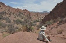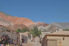 Troisième journée, on sent un changement d’ambiance assez soudain, notamment à notre arrivée à Tilcara. Comme le dit Alicia, la mine un peu déconfite, en arrivant sur la petite place centrale, mignonne mais occupée intégralement par des échoppes à touristes et des restaurants pour gringos : « Ah, mince, c’est super touristique ! ». Le cœur de la ville est joli, mais on sent qu’on change clairement de monde pour un lieu beaucoup plus dédié au tourisme. Nous dormons ce soir-là dans un petit village assez similaire, Purmamarca, qui ne doit vivre dorénavant que du tourisme. Dans les rues du centre bourg, le nombre de restaurants et de logements pour touristes est vraiment impressionnant en comparaison avec le nombre de commerces “ordinaires” et logements de locaux. Trouver où dormir à un tarif accessible pour notre budget devient plus compliqué. C’est sûr, en Argentine, la tente sera plus souvent de sortie ! Heureusement, les paysages restent grandioses, les couleurs et formes des montagnes environnantes sont superbes !