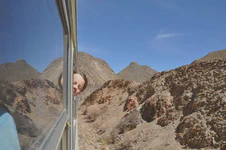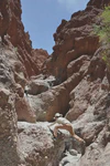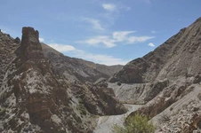 Là, si vous avez bien suivi jusqu’ici, vous devez vous demander : « Mais c’est quoi l’Arnaque du Siècle ??? ». Parce que bon, jusqu’ici, tout va bien. Eh bien, l’arnaque du siècle, c’est justement cette descente. Depuis le col, jusqu’en bas, soit près de 190 km, nous aurons eu 13 km à peu près de véritable descente, à savoir sans avoir besoin de forcer sur les pédales pour avancer. Donc soit sans vent, soit avec le vent dans le dos. Tout le reste du temps, nous aurons eu un FORT vent de face qui nous a obligé à pédaler bien souvent malgré le dénivelé négatif. C’était frustrant mais ça nous a quand même bien fait rigoler. Et surtout le paysage est resté superbe ! La géologie de la région doit être vraiment intéressante car ces montagnes sont fascinantes par leurs formes et leurs couleurs.