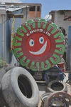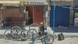 Après la traversée du désert de sel, l’entrée dans Uyuni n’a rien, vraiment rien d’une arrivée dans une oasis. Rues poussiéreuses, vent quotidien, pas de centre-ville un peu joli, point de départ d’excursions pour gringos donc prix pour gringos, bref, cette ville ne présente que peu d’intérêt… Heureusement, nous nous réfugions dans la casa de ciclista Puinguï de Myriam ! Et c’est bien ! Nous nous y installons pour quelques jours, enfin cinq jours pour être plus précis. Ici, rien de luxueux : une douche et un toilette pour tout le monde ; si affluence il y a, on partage bien sûr sa chambre avec des inconnus ; pas de lit mais des palettes sur lesquelles poser les matelas de bivouac. Mais l’ambiance y est chaleureuse ! Les chambres sont distribuées autour d’un patio central couvert, avec tables, bancs, hamacs, cuisine, chiens, chats et perroquet. Nous y partageons plusieurs repas avec tous les cyclistes qui arrivent chaque jour : argentins, polonais, tchèques, états-uniens, italiens (merci Claudio pour les bonbons et les gâteaux pour les enfants !), allemands, britanniques, etc. Il a fallu faire chauffer les cerveaux pour passer, parfois d’une phrase à l’autre de l’espagnol à l’anglais, puis au français pour revenir à l’espagnol.