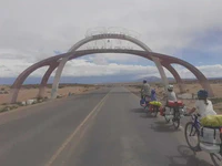 Le lendemain, dernière journée en Bolivie. Nous terminons laborieusement la belle montée entamée la veille, et filons vent de dos, sur un paysage qui est redevenu à peu près plat, jusqu’à Villazon pour nos derniers kilomètres en Bolivie. Arrivés en milieu d’après-midi, nous préférons attendre le lendemain pour passer sereinement la frontière. Nous entrons donc en Argentine le samedi 15 novembre par la frontière de La Quiaca, un peu tristes de quitter la Bolivie mais heureux de commencer à découvrir un nouveau pays ! Dès la frontière, on ressent une différence assez forte avec la Bolivie : en quelques centaines de mètres, on ne voit presque plus de cholitas avec leurs jupes volumineuses, place au combo jeans – T-shirt, plus de collectivos remplis à ras bord de personnes et de marchandises sur les routes mais des voitures particulières ! On ne se presse pas à La Quiaca, le temps d’acheter une nouvelle carte SIM pour le téléphone, d’essayer de trouver de l’argent liquide en essayant de ne pas trop se faire avoir sur les taux de change (mission impossible en Argentine !), de faire quelques courses, etc. C’est samedi, et samedi à La Quiaca, c’est jour de feria, avec notamment plein de petits stands d’empanadas, de salades de fruits et de fraises à la crème chantilly. On avait peur que les prix soient clairement plus élevés qu’en Bolivie, mais sur ces stands, ça reste très correct. Les prix seront sûrement plus élevés au sud, alors… on se fait plaisir ! On est gourmand… A force de traîner, de parler avec plein de curieux et d’autres cyclos qu’on croise, il finit par être un peu tard, et on décide de rester dormir à La Quiaca. Nous dormons dans un petit hostal où on se fait inviter par les proprios à un barbecue. Première nuit en Argentine, premier barbecue : le ton est donné !