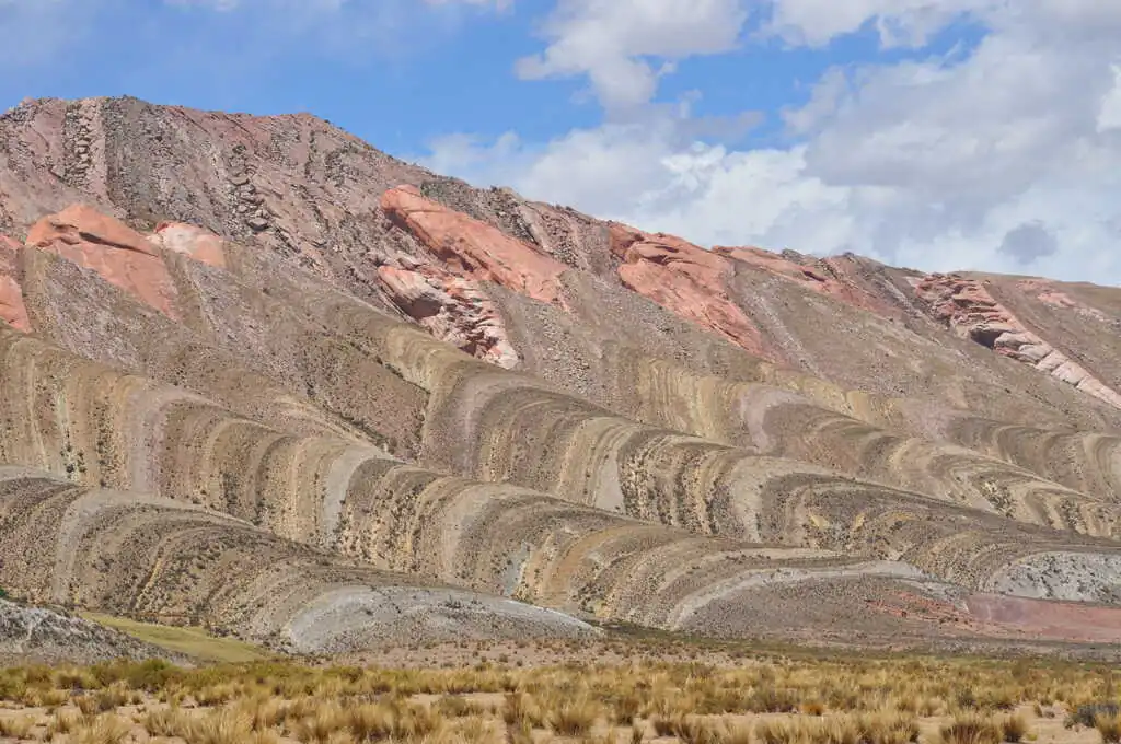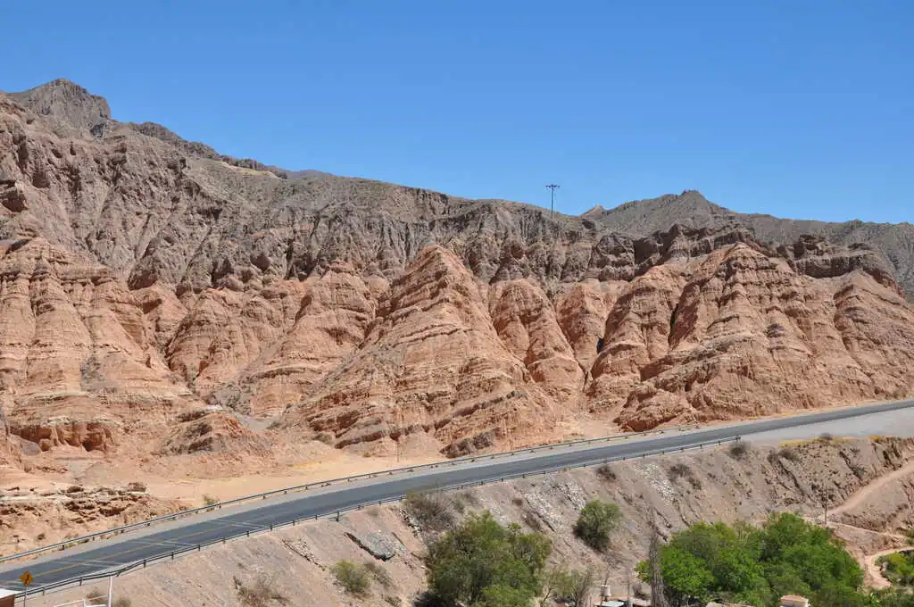 Troisième journée, on sent un changement d’ambiance assez soudain, notamment à notre arrivée à Tilcara. Comme le dit Alicia, la mine un peu déconfite, en arrivant sur la petite place centrale, mignonne mais occupée intégralement par des échoppes à touristes et des restaurants pour gringos : « Ah, mince, c’est super touristique ! ». Le cœur de la ville est joli, mais on sent qu’on change clairement de monde pour un lieu beaucoup plus dédié au tourisme. Nous dormons ce soir-là dans un petit village assez similaire, Purmamarca, qui ne doit vivre dorénavant que du tourisme. Dans les rues du centre bourg, le nombre de restaurants et de logements pour touristes est vraiment impressionnant en comparaison avec le nombre de commerces “ordinaires” et logements de locaux. Trouver où dormir à un tarif accessible pour notre budget devient plus compliqué. C’est sûr, en Argentine, la tente sera plus souvent de sortie ! Heureusement, les paysages restent grandioses, les couleurs et formes des montagnes environnantes sont superbes !