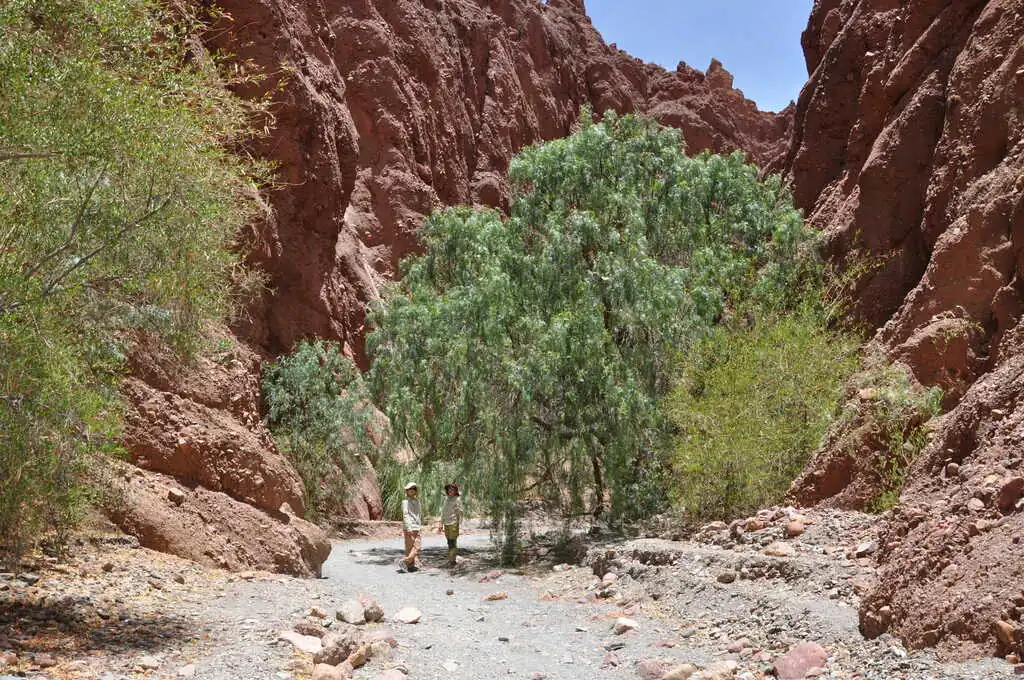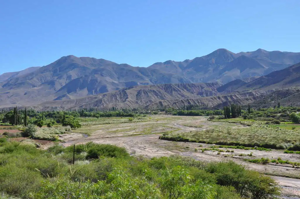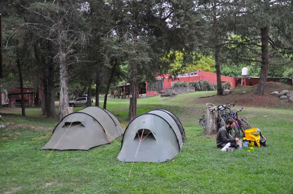 Grâce à une journée de pause pluvieuse au camping El Refugio de Yala, nous (re)découvrons le rythme de vie des Argentins au camping : lever vers 7h12, on allume évidemment direct la musique, si possible à un volume sonore élevé histoire d’être sûr de ne pas entendre de silence. 7h13, on allume le barbecue en prévision des 15 kg de viande à faire cuire pour le petit déjeuner. Toute la journée : on alterne baignade, grosse rigolade et… barbecue évidemment ! 22h00, on monte le son encore plus fort pour être sûrs de ne pas respecter l’interdiction de faire du bruit après 21h30, 3h00, on est fatigué, on va se coucher. Et le lendemain : on recommence. Et on exagère à peine… Les trois jours suivants sont du pur délice. On traverse rapidement San Salvador de Jujuy, où à part trouver de bons empanadas, nous n’avons pas grand-chose à faire. On installe le bivouac au bord d’une petite rivière avec un couple de cyclistes Colombiens rencontrés sur la route le jour même.