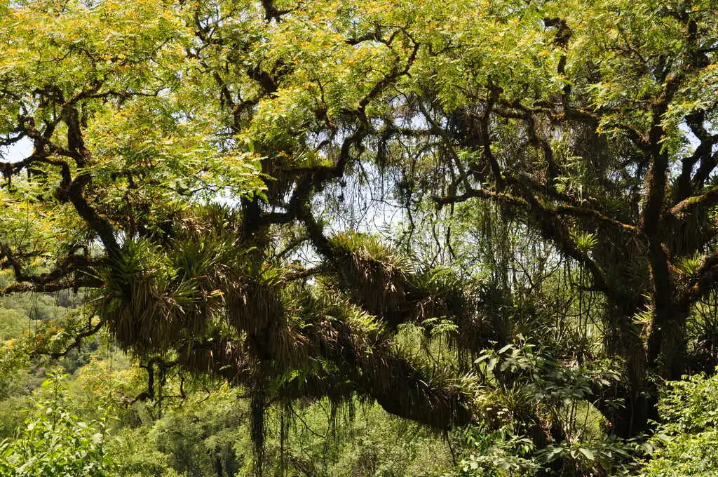 Au quatrième jour de cette interminable descente, ascenseur émotionnel ! Un peu blasés par le vent, et comme Nahuel était patraque la veille, on retarde le réveil. On partira quand on partira, tant pis pour le vent ! Le vent souffle ENFIN dans notre dos !! On est super content, on se dit qu’on va enfin en profiter de cette descente ! Nous parcourons 13 km en très peu de temps, à une moyenne de 30 km/h sans rien faire. Quel pied ! Et tout à coup, sans aucun signe avant coureur, il y a en 15 secondes une bascule de vent et on se retrouve de nouveau à lutter contre un gros vent de face ! C’est dur !! Cette descente c’est l’arnaque du siècle ! Enfin, après une ultime belle montée face au vent, nous descendons fort d’un coup sur plusieurs centaines de mètres de dénivelé (et nous trouvons encore le moyen… d’être bloqué par un camion !). Et là, mais là !!! Quel bonheur ! En quelques kilomètres, les montagnes se couvrent d’arbres, tout devient vert, l’air plus humide et plus chaud : nous entrons dans la partie argentine de la forêt tropicale des Yungas ! Nous retrouvons des odeurs (notamment celle de la végétation humide) et des sons (des insectes !!!) oubliés depuis notre départ. Nous quittons la route principale pour une piste latérale, tout le monde se délecte de ce changement d’ambiance si soudain, les enfants n’en reviennent pas !