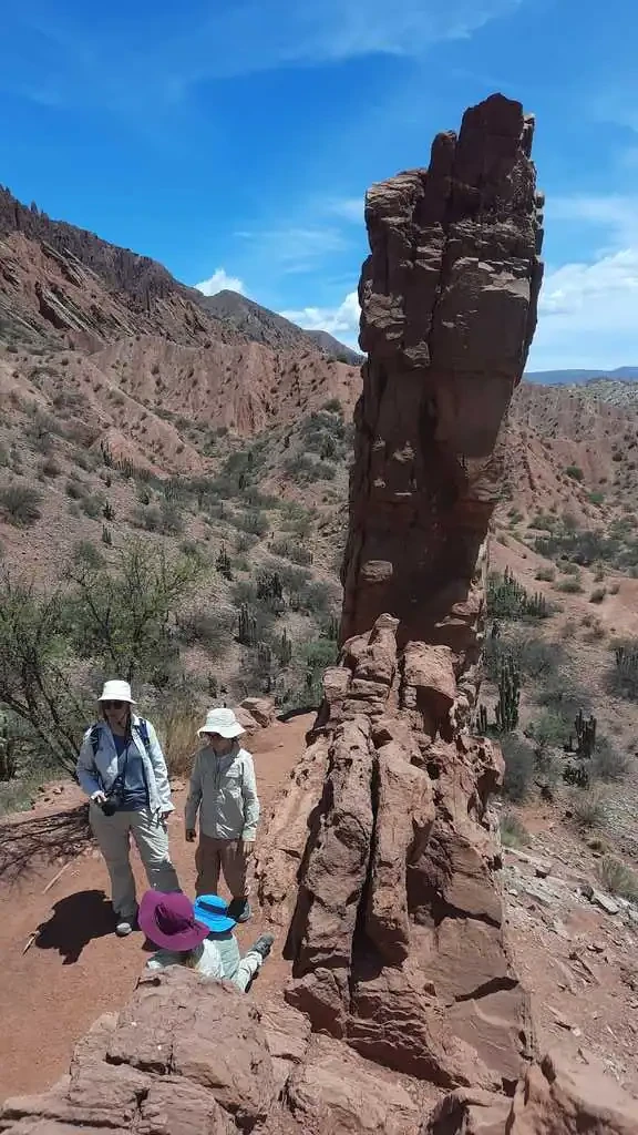 Après six heures de voyage, nous arrivons dans la ville de Tupiza. Nous nous installons dans une auberge de jeunesse pour deux nuits car nous avons promis aux enfants une activité touristique qu’ils attendent avec impatience : une balade à cheval dans le canyon de l’Inca ! Nous avons perdu un peu en altitude et cela se sent : il fait bien plus doux et dans la ville, il y a une place centrale avec des arbres et même de l’herbe !! Même si le paysage autour reste très aride, ça fait du bien ce vert et ces fleurs !! Le lendemain, comme promis, nous passons la matinée à cheval, histoire de faire travailler d’autres muscles des jambes. Les enfants sont ravis, Alicia bien sûr, Sofia est très fière de monter son propre cheval, et Nahuel, après une petite blague de son cheval qui a la bonne idée de commencer la balade par une ruade, reprend rapidement confiance. Nous nous baladons entre des formations géologiques assez fascinantes, c’est magnifique !