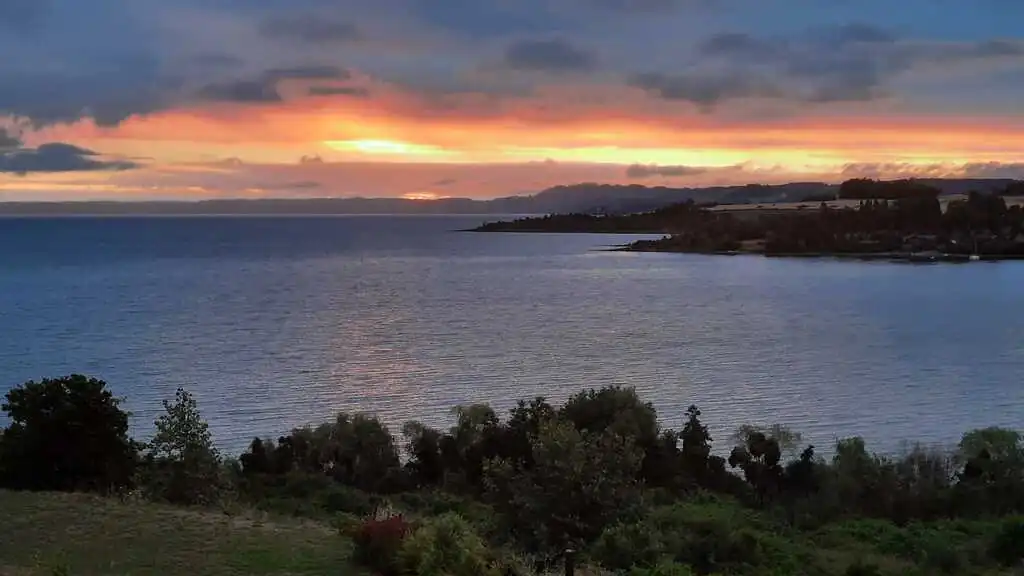 Futrono devait être une rapide étape, une petite glace en fin de journée et une nuit au camping tout au plus… mais la chute de Sofia en a décidé autrement ! Le 10 janvier, après son accident et grâce au bouche-à-oreille, nous sommes invités très généreusement par Pamela et Henry à séjourner chez eux. Ils habitent une belle et grande maison, une chambre est vide, et nous la louent pour une somme très raisonnable. Et cela nous arrange car la pauvre Sofia ayant de belles plaies aux articulations, ça aurait été compliqué pour elle de dormir en tente. Encore une fois, en Amérique du Sud, les soucis ne durent que peu de temps, on trouve toujours une solution qui, dans le cas présent, vient à nous d’elle-même ! Merci Alfonso pour le tuyau ! Il faut juste apprendre à lâcher prise et parfois se laisser porter par le cours des évènements avec confiance. Pompon sur la pomponette, la maison de Pamela et Henry se situe dans les hauteurs au bord du lac Ranco avec une vue incroyable sur ce dernier, et des couchers de soleil… comment dire ?? Impossible de s’en lasser ! Le premier jour, nous pensons encore être en mesure de repartir le lendemain, ou au pire le jour suivant… Mais entre l’attente pour la cicatrisation des plaies, une douleur inattendue au genou pour Sofia et une radio de contrôle dans la grande ville la plus proche (à une heure et demi de route tout de même), nous ne le savons pas encore mais nous allons passer six jours à Futrono !