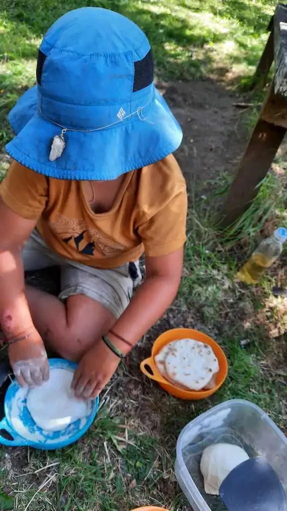 Et finalement, nous remercions presque Sofia pour cette pause inattendue car elle nous permet de passer une super semaine en compagnie d’une chouette famille chilienne : Pamela et Henry, les parents, Amara et Matteo, leurs enfants, et enfin Orfa, la maman de Pamela en vacances à Futrono. Ça commence fort le premier soir où nous arrivons chez eux vannés à 21h00, encore un peu sous le choc de la mésaventure matinale de Sofia. On décharge les vélos, on installe nos affaires, couchons les enfants… et nous rendons compte qu’un barbecue de bienvenue est en préparation ! Ok, si on veut en profiter, il va falloir se mettre au rythme chilien : goûter vers 19h00, dîner à 22h00, on trinque à 1h00, se couche à 2h00 et… grasse matinée jusqu’à 10h00 !