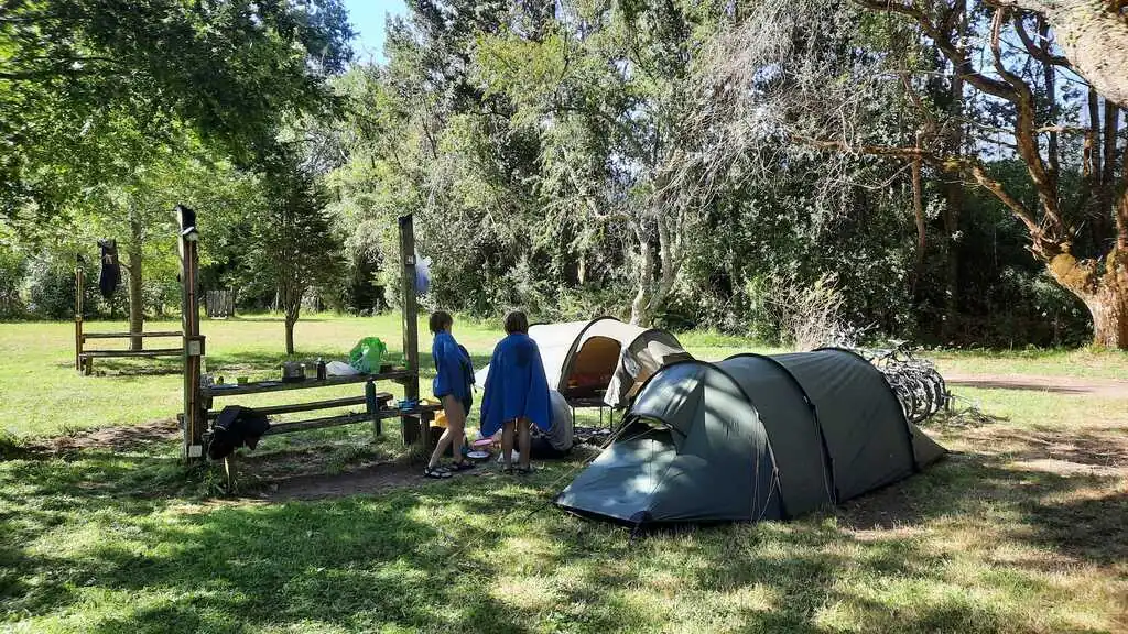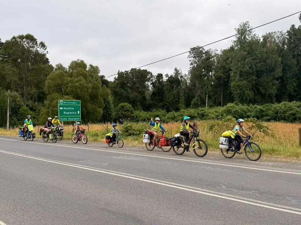 La route continue, à présent beaucoup plus morne et plate que tout ce que nous avons parcouru ces dernières semaines. On s’éloigne de ces si belles montagnes à regret. Le trafic s’intensifie également, mais nous avançons aussi plus vite. Nous savons que ce sera ainsi jusqu’à Puerto Montt, alors on trace ! Oh mais attendez…! Des Français à vélo, avec des enfants ! Mais ouiiii, enfin ! À notre connaissance, nous sommes quatre familles à vélo au sud de l’Amérique du Sud, une famille française et nous qui descendons vers le sud, et deux autres qui remontent vers le nord. Et on a réussi à tomber sur l’une d’entre elles par hasard ! Sauf que nous nous croisons… mais les enfants sont tellement heureux de rencontrer d’autres enfants en voyage à vélo, que nous décidons de faire demi-tour et de revenir 5 kilomètres en arrière. Nous passons donc cette journée en compagnie de Danaelle, Lucas, Norah et Alix, qui ont commencé leur voyage il y près de trois mois à Ushuaïa et remontent jusqu’à fin juin vers Cusco. Au programme : jeux, papotage, baignade, échange d’enfants dans les tentes et petit barbecue – bière au bord du lac. Les enfants sont ravis, et les parents aussi !!