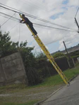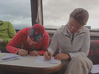 Mais le jour du départ, gros pas de bol : il fait un temps super pourri, peut-être une des pires journées du voyage au niveau pluie et vent. Nous n’avons pas le choix, les billets sont pris ! Nous prenons à successivement deux bateaux, puis une bonne montée bien pentue sous une pluie qui pourrait s’apparenter à une grosse douche froide nous attend. Hummmmm ! Nous sommes tout mouillés ! Sur la route, des policiers sympas nous prennent nos sacoches pour les emmener en voiture jusqu’au prochain bateau, pour qu’on puisse aller plus vite et être sûr de ne pas le louper. Et ça marche ! On saute dans le dernier bateau in extremis. Le voyage est épique jusqu’au bout : le débarquement final se fait sous un déluge de pluie et de vent, genre bonne tempête bretonne. Un régal ! Bon, nous n’aurons pas profité du paysage à 100 %, mais le voyage était quand même chouette et on s’est bien marré au final !