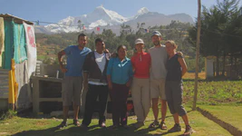 Après une bonne journée et déjà presque mille mètres de dénivelé engloutis, nous arrivons au petit village de Huachao, que les habitants semblent avoir déserté. Le vent est toujours là, nous commençons à bien nous refroidir, et l’idée d’une nuit dehors ne nous emballe pas plus que ça. Alors que nous cherchons un moyen de dormir dans l’école, une petite dame nous invite spontanément à dormir chez elle : parfait ! Nous profitons donc des derniers rayons du soleil les fesses posées dans l’herbe du jardin de Jenny. Les nuages se dissipent même, nous laissant enfin voir les sommets environnants, dont le superbe Huascaran, plus haut sommet du Pérou avec ses 6 768 mètres. Vivement le jour d’après !!!