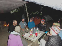 C’est bien une des choses inattendues du voyage : pouvoir créer des liens avec d’autres voyageurs. Spécialement avec ceux qui comme nous font un voyage au long cours, nous formons une sorte de petite communauté, où tout le monde se connaît de vue ou par le bouche-à-oreille, échange des infos sur l’avancée de un tel ou un autre, partage des infos sur le chemin à venir, se sépare et se retrouve au hasard des choix de route. Il y a les p’tits nouveaux (ceux qui arrivent du Sud et qui commencent leur voyage), les confirmés, les vieux d’la vieille qui sont sur les routes du monde depuis des années… Bref, tout un petit monde dans lequel on se sent bien ! Nous passons donc un réveillon très festif, c’est top ! L’année se finit aussi bien qu’elle a commencé et s’est déroulé !