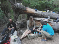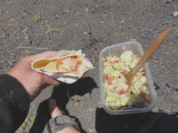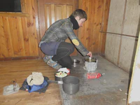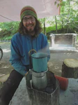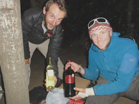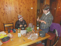 Avec Maud, nous louons une petite maisonnette, au moins nous serons au chaud pour attendre l’arrivée du Père Noël… Pas de restaurant d’ouvert, nous essayons de trouver au moins quelque chose de sympa à manger. Mission : impossible ! En plus, les services postaux du Père Noël ont du rencontré des soucis car aucun cadeau n’est arrivé… Aaaaaaah ! Noël pourri ?? Mais non ! Car notre petite Maud, belge de son état on le rappelle, réussit un tour de force : elle nous prépare de délicieuses frites maison avec la seule aide d’un réchaud à essence, et presque au péril de sa vie ! Nous passons donc un Noël en petit comité, sans foie gras ni saumon fumé, mais quand même super chouette !