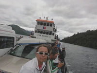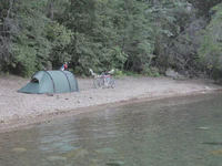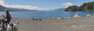 Le lendemain, nous prenons donc le ferry pour traverser un lac avant d’arriver à la frontière avec l’Argentine, en compagnie de quatre cyclos brésiliens sur la route pour leurs deux semaines de vacances. Nous passons de nouveau en Argentine, un dernier bivouac au bord d’un lac, quelques coups de pédale, un choc frontal évité de peu avec une voiture remplis par quatre gros c******* (aaaaaaaah les automobilistes argentins, tout un poème…), et nous voilà arrivés à San Martin de los Andes le 30 décembre. Timing parfait !
