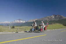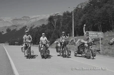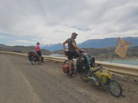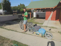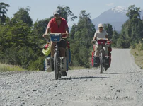 C’est au beau milieu de toute cette harmonie que Eddy, fidèle vélo de Johann, décide de flancher ! Un vilain caillou, un bon choc, et PAF ! La soudure qui tenait déjà l’ancien point de rupture lâche. Le moral de l’équipe en prend un coup. Mais on s’en fiche, on est quatre, rien ne pourra nous arrêter !!! Nous trouvons une camionnette, nous embarquons tout le matos, et décidons de rester tous ensemble pour trouver un soudeur alu. Il nous faut en fait aller jusqu’à Coyhaique, 250 kilomètres plus au Sud, nous zappons donc un bout de route. Mais tant pis, le problème est réglé, le moral des Lego est au top. La fine équipe reprend la route !