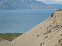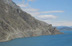 Car, comme on n’est pas des malins, on s’était dit : Chouette ! On n’a qu’à prendre la petite route au bord du lac, ça va être tellement champêtre !. Eh bien : PER-DU ! On s’engage en fait dans un espèce de grand huit interminable, avec des pentes à près de 20 %, agrémentés (encore) d’un ripio bien sympa. On a pris très cher !!! Par contre, nous avons été largement récompensés par le paysage. Mais est-ce encore utile de le préciser ??
