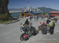 Nous montons tranquillement jusqu’au plus haut col de la Carretera, à 1 200 mètres d’altitude. Cela nous paraît bien peu en comparaison avec les altitudes atteintes ces derniers mois ! La route continue de serpenter entre les montagnes. Tous les jours, de nouveaux glaciers se dévoilent sous nos yeux ébahis. Plutôt que de suivre la route classique, nous optons pour un petit détour : nous prenons le bateau de Puerto Ibañez à Chile Chico, histoire de traverser le deuxième plus grand lac d’Amérique du Sud, le lac General Carrera (lac Buenos Aires du côté chilien).