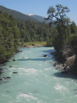 Débarqués en milieu de journée à Chaiten, nous n’y restons que quelques minutes. Il s’agit plus d’une ville fantôme en fait, car en mai 2008, l’éruption du volcan éponyme a provoqué des coulées de boue qui ont englouti une partie de la ville. Quelques personnes sont revenues y vivre mais l’ambiance y est plutôt morose… Nous enfourchons enfin nos fidèles montures pour nos premiers tours de roues sur la Carretera Austral : Houhou ! Bon, les premiers kilomètres ne sont pas du tout, mais alors PAS DU TOUT représentatif de l’état général de cette route. Un bel asphalte lisse et régulier, une pente en faux plat montant très doux. Attention futur cycliste ! Profites-en bien, ça ne va pas durer !