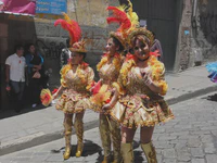 Nous choisissons de ne pas descendre en vélo jusqu’à La Paz. La ville est au fond d’une cuvette. Qui dit descente à l’arrivée, dit montée pour le départ. Et nous n’en avons pas du tout envie. Nous restons donc dans les hauteurs, quartier baptisé la Ceja[^2] du fait de sa position en équilibre sur les montagnes environnants La Paz. Nous n’avons pas vraiment aimé cette ville, trop sale et trop agitée. Nous avons quand même eu de la chance : nous sommes tombés en plein festival dans un des vieux quartiers. L’occasion pour nous de voir quelques danses folkloriques et de beaux costumes ! Nous n’y sommes restés que peu de temps, histoire de régler notre prolongation de permis de séjour et de faire les derniers réglages avant le départ pour l’Altiplano, et avec comme objectifs mythiques : le Salar de Uyuni et le Sud Lipez !!!