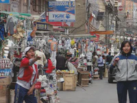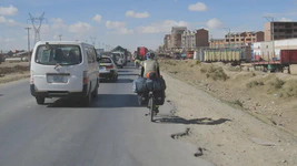 Le 28 septembre, nous reprenions la route, enfin, après près de trois semaines de vacances. Les premiers kilomètres nous ont mené en deux jours à La Paz, du bon asphalte, des grandes lignes droites, quelques petites montées pour réveiller les mollets, rien de tel pour s’échauffer ! Dès le premier soir, nous retrouvons nos vieilles habitudes et toquons chez quelqu’un pour demander l’hospitalité. Ce soir-là, ce quelqu’un est un prêtre, adorable, qui nous offre 4 murs et un toit pour la nuit, des matelas en paille, le dîner et le petit déjeuner. Royal ! Nous quittons définitivement les bords du lac Titicaca, et grimpons vers La Paz, plus haute ville du monde de cette taille. L’entrée est la plus éprouvante que nous n’ayons jamais faite dans une grande ville (vous voyez, ça commence les extrêmes). Nous traversons El Alto, qui est une ville moche, grise, sale, polluée, grouillante de colectivos[^1] Les rues débordent de véhicules motorisés, circulants sans aucune règle apparente, le flot des piétons est effrayant. Nous nous sentons comme des fétus de paille ballottés dans cette circulation, presque écrasés à chaque nouveau soubresaut. On dirait que la ville vomit ses habitants. Charmante arrivée.