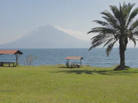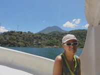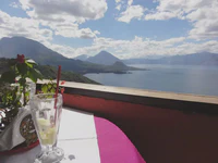 Nous sommes enfin arrivés ensuite au lac d’Atitlan, le plus profond d’Amérique centrale, niché au creux des montagnes. Un vrai petit bijou ! Nous nous sommes installés pour deux jours dans un petit camping au bord du lac, avec piscine et vue sur les volcans, car nous avions rendez-vous avec les Mistrals (avec qui nous avions passé Noël et le premier de l’an). Là, nous en avons profité à fond, fêté nos anniversaires, bu du rhum dans des noix de coco, passé du bon temps avec des amis, fait un tour en bateau. Bref, le paradis !