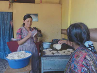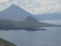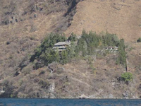 Nous avons ensuite filé en direction du lac d’Atitlan. Nous avons réussi à nous faire accueillir pour la première fois dans une famille indigène, ce qui nous a valu une expérience un peu gênante mais plutôt amusante. A partir du moment où nous sommes arrivés dans cette famille, nous avons eu en permanence un public d’enfants et d’adultes pour observer nos moindres faits et gestes. Pour la nuit, nous avons eu le droit de partager la pièce familiale, dans laquelle quatre personnes se partageaient le même lit. Le point d’orgue a été atteint au moment du coucher lorsque nous avons sorti nos affaires de nuit (matelas mousse et duvet), ce qui au moins a eu le mérite de provoquer de nombreux rires ! Il n’est pas évidement de se mettre en pyjama en se tortillant dans son duvet quand six paires d’yeux vous regardent. Mais la glace a été suffisamment brisée (merci aux ballons de baudruche) puisque nous avons enfin pu prendre quelques photos (ce qui jusque-là avait été impossible).