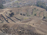 Nous ne le savions pas encore, mais notre départ de Atitlan a marqué le début d’une longue période de grosse chaleur. En quittant le lac, nous sommes de suite descendus des montagnes en allant au plus court vers la côte. Mais en perdant de l’altitude, nous avons gagné beaucoup (trop ?) de degrés. La descente a tout de même été magnifique car nous avons roulé à travers une vaste zone de culture de café. Mais une fois la plaine côtière atteinte, ça a été la fin de la tranquillité : à la fraîcheur a succédé la chaleur, des petites routes de montagnes, nous sommes passés aux grosses routes très fréquentées (surtout par les camions) et les petits villages traditionnels ont laissé place aux grosses villes bruyantes, sales et polluées. Bon, autant vous dire que ça fait un choc ! Nous n’avons donc pas traîné et avons atteint la frontière avec le Salvador quelques jours plus tard.