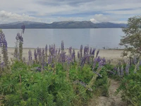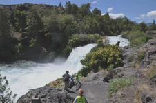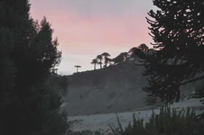 C’est dans cette descente que LE changement opère : en quelques kilomètres, nous quittons définitivement les paysages secs et semi-désertiques et plongeons avec délice vers des paysages de forêts ! L’apothéose est atteinte lorsqu’au détour d’un virage, le lac Icalma apparaît, magnifique, déroulant une superbe plage déserte. Ni une, ni deux, les vélos sont posés sur le bas-côté, nous enfilons les maillots de bain et sautons à l’eau ! Nous poursuivons le lendemain en montée jusqu’au poste frontière argentin, puis entrons au Chili par la toute petite frontière d’Icalma. Dès les premiers kilomètres, on retrouve la piste (que nous avions quitté au lac Icalma) et cette manie chilienne : ils ne connaissent pas les lacets ! Les pentes sont raides en montée comme en descente. Mais les paysages sont tellement beaux !! Nous naviguons entre de belles montagnes arrondies, des volcans et des lacs. Notre premier bivouac chilien est parfait : au bord d’un lac, sur de l’herbe bien grasse et humide, de l’eau douce à portée de main, des arbres partout où porte le regard. Nous profitons tous de cette soirée paisible des étoiles plein les yeux.