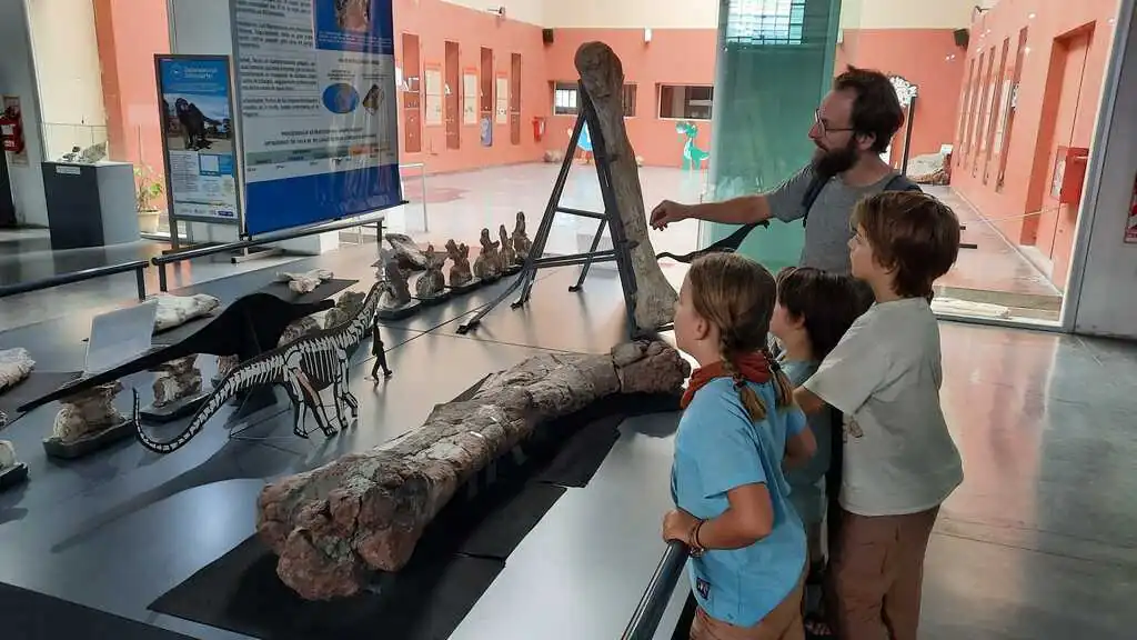 A Zapala, nous nous installons au camping municipal qui a le gros avantage d’être gratuit. On ne sait pas quand arriveront nos vélos, dans deux jours, peut-être 4, ou 6… Nous prenons donc notre mal en patience, mais commençons à avoir les jambes qui nous démangent, et nous sommes ravis de constater que les enfants aussi ! On a hâte de reprendre la route ! Nous profitons donc de ce temps posé pour prendre le temps de cuisiner sur les nombreuses parillas (barbecues) installées dans le camping comme partout en Argentine. Les enfants jouent entre les pins, on ne sait pas trop quels mondes ils s’inventent, mais on les aperçoit de temps en temps passer, Sofia et Alicia un arc à la main. Nous rencontrons aussi d’autres voyageurs de passage, à vélo, en moto, en camion. Sofia et Alicia peuvent parfaire leur technique pour faire des bracelets auprès de Luisa, cyclo colombienne. La province de Neuquen, dans laquelle nous sommes, est connue dans le monde de la paléontologie pour abriter de nombreux fossiles de dinosaures. Nous visitons le très chouette musée Olsacher qui présente de très impressionnants fossiles de dinosaures découverts dans la région, ainsi qu’une belle collection de pierres du monde entier. Les enfants nous réclament également depuis plusieurs semaines de passer dans une bibliothèque, nous nous rendons donc à celle de Zapala. C’est un peu la douche froide… Nous avons l’habitude de notre géniale bibliothèque de quartier à la Roseraie à Angers : devant les deux ou trois étagères sur lesquels les vieux ouvrages relativement abîmés attendent tristement, les enfants mesurent la chance que nous avons de bénéficier d’une médiathèque telle que celle que nous avons à 5 minutes à pied de la maison !