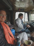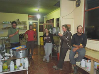 Sans rentrer dans les détails, on peut dire que ça a été un échec total !!! Première journée : sept heures d’attente. On a tout tenté, même les flics, très sympas, nous ont aidé à arrêter les camions. Mais rien ! Nous nous sommes faits emmenés jusqu’à Tolhuin, 100 kilomètres plus loin, par un camionneur très sympa. Nous voulions aller là-bas pour au moins avoir un logement gratuit à la boulangerie d’Emilio, où nous étions passé une semaine plus tôt. Nous y avons été accueillis avec autant de gentillesse que la première fois. Encore une fois un très grand merci à Emilio et son équipe !!! Pompon sur la pomponette : nous y retrouvons quelques amis que nous pensions ne pas réussir à voir avant le retour.