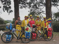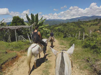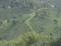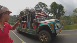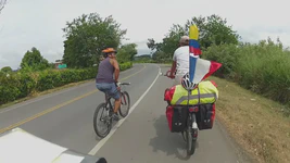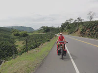 En cumulé, entre le stand-by au Panama, la traversée en bateau, le tourisme à Carthagena puis Medellin, nous avons passé deux semaines et demi sans monter sur nos vélos. Autant vous dire que la reprise a été difficile, surtout qu’à la sortie de Medellin nous attendait un dénivelé positif de 1 000 mètres à engloutir en 25 kilomètres. Dur dur ! Le genre de moment où on se dit : Ça y est, on est dans les Andes, on va prendre très cher !. Mais très vite, le paysage est devenu vraiment beau : montagnes, ciels bleus, cols, nous sommes rentrés dans une zone de culture de café très tranquille. Ça pousse à toujours aller voir ce qu’il y a de l’autre côté du virage. Et puis, la grande majorité des colombiens est tout simplement adorable. On ne compte plus les encouragements, les petits cadeaux (petits gâteaux, jus de fruits… ), les coups de klaxon enthousiastes. Presque autant que du football, ils sont fans de cyclisme. Nous n’arrêtons pas de croiser des équipes de cyclistes, professionnels ou amateurs.