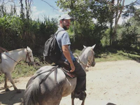 Encore un coup de chance, nous sommes arrivés au début des fêtes patronales de San Pedro, qui donne lieu à des cavalcades de cow-boys locaux à travers les rues de la ville. Un vrai spectacle ! Du coup, ça nous a donné envie de monter à cheval. Nous nous sommes offert une jolie balade, sur une selle un peu différente, pour aller visiter quelques sites archéologiques dans les montagnes. Du pur bonheur ! Une très très belle étape, couronnée par la présence d’une pâtisserie française, une vraie ! où nous avons pu manger nos premiers vrais bons éclairs au chocolat depuis notre départ de France.