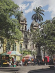 Medellin, tout comme Cali, a été le théâtre des heures les plus sombres de l’histoire récente de la Colombie. Du temps de Pablo Escobar, chef de cartel de la drogue surpuissant (il aurait amassé 40 milliards de dollars pendant sa carrière), elle a subi de plein fouet le terrorisme et la peur. Depuis, les temps ont bien changé, l’état a réussi à reprendre le dessus, et Medellin est maintenant une grande ville semblable à toute métropole du monde, avec un métro moderne et des bouchons. Cette période noire a laissé des traces indélébiles : une série télévisée sur la vie de Pablo Escobar est actuellement diffusé sur une chaîne nationale, on sent que son accueil est plutôt mitigé. Les gens la critiquent, jugeant que c’est encore trop récent dans la mémoire collective, mais les mêmes personnes restent scotchées à leur écran au moment de la diffusion. D’ailleurs, à Cali et dans sa province, il est toujours interdit à deux hommes de monter ensemble à moto : c’était le moyen d’action privilégié des tueurs des cartels. Mais jamais nous n’avons senti d’insécurité. Nous avons goûté avec plaisir les premiers plats colombiens, et avons découverts avec joie que les colombiens sont de grands fans de jus de fruits frais. Miam !