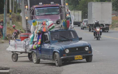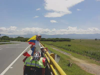 Après quelques belles montées et descentes, nous avons atteint la plaine située entre les Cordillières Centrale et Occidentale. Un bon contraste : fini le café, place à la canne à sucre et aux chargements de camions monstrueux ; fini les côtes, à nous le plat pour quelques jours de répit. Avant d’arriver à Cali, située au Sud de cette vallée, nous avons traversé de nombreux petits villages, avec toujours autant d’enthousiasme de la part des gens que nous croisions. Nous avons même fait une rencontre vraiment inattendue, au fin fond de la cambrousse : un colombien ayant habité et travaillé à Saint-Malo intra-muros et qui nous a chanté, le plus naturellement de monde “J’entends le loup, le renard et la belette” !!!