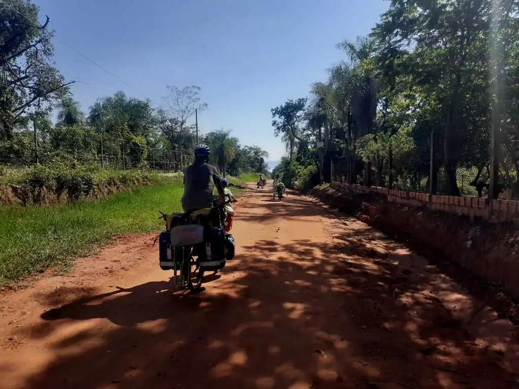 Nous avons visé une toute petite frontière. Après avoir passé l’office de migration côté argentin, c’est un petit bac qui nous attend pour traverser le fleuve Paraguay qui marque la frontière entre le pays éponyme et l’Argentine. Sur l’eau, le soleil tape fort, il y a peu d’air. Après y avoir débarqué, l’entrée au Paraguay se passe sans encombre. Les premières personnes à qui nous avons à faire sont souriantes et très aimables. Tout le monde nous souhaite la bienvenue avec un enthousiasme sincère. Ça change de certaines frontières où les gens tirent un peu la tronche ! Entre le port et notre point de chute, il nous faut pédaler en ville encore une quinzaine de kilomètres, et là c’est dur, la chaleur nous écrase et nous transpirons à grosses gouttes. Dans le premier quartier traversé, nos repères sont bousculés. Tout en restant attentifs, il nous faut étouffer cette petite voix d’européens privilégiés dans notre tête qui nous dit : « Hou là là, c’est pas fou ici, les trottoirs sont défoncés, les rues aussi, les maisons sont de bric et de broc, ça craint non ? ». Mais les gens sont tous souriants. Contrairement à certains endroits où nous avons pu passer précédemment et où les gens nous mettaient en garde, ici, tout le monde nous souhaite la bienvenue. Puis sans transition, nous entrons dans un quartier ultra-privilégié avec golf et yacht-club, et, ce qui nous frappe le plus, d’énormes villas… sans aucune clôture. Généralement, dans les autres pays d’Amérique du Sud que nous connaissons, même les maisons modestes sont souvent entourées de hautes clôtures, si possible avec barbelés, verre pilé, et enfin barreaux à toutes les fenêtres. Ici, beaucoup de maisons n’ont pas de clôtures du tout et des barreaux seulement au rez-de-chaussée. C’est plutôt rassurant.