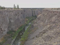 Jusqu’à la ville de Bend, la route est devenue moins sauvage et plus fréquentée, donc un peu moins chouette à faire en vélo. Une nouvelle fois, la haute plaine que nous avons traversé était déchirée par un canyon très impressionnant. Il a ralenti la colonisation des territoires au-delà jusqu’en 1910 (!!!), date à laquelle le premier pont l’enjambant a été construit. C’est dire si l’histoire de la région est récente !