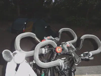 Comme on nous l’avait promis, ici on saute directement de l’été à l’hiver ! Alors qu’une semaine auparavant nous roulions en T-shirt et sandales, à Bend, il nous a fallu sortir gants, bonnets et autres vêtements d’hiver : il a gelé dès notre première nuit là-bas. Les vêtements que nous avions lavé et mis à sécher dehors pendant la nuit sont devenus rigides comme du carton ! Les vélos étaient recouverts du givre et nous avons dû petit-déjeuner dans les duvets… Il faisait 1°C dans la tente au réveil. C’est froid.